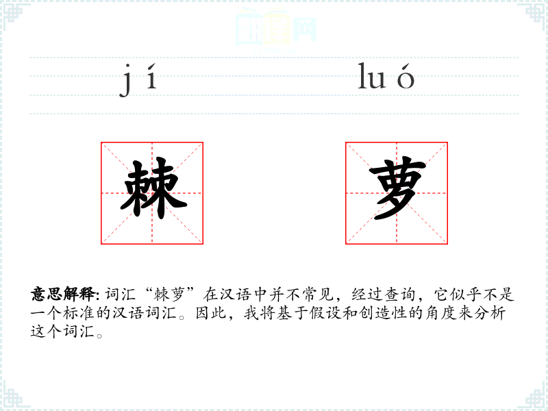词汇“棘萝”在汉语中并不常见,经过查询,它似乎不是一个标准的汉语词汇。因此,我将基于假设和创造性的角度来分析这个词汇。