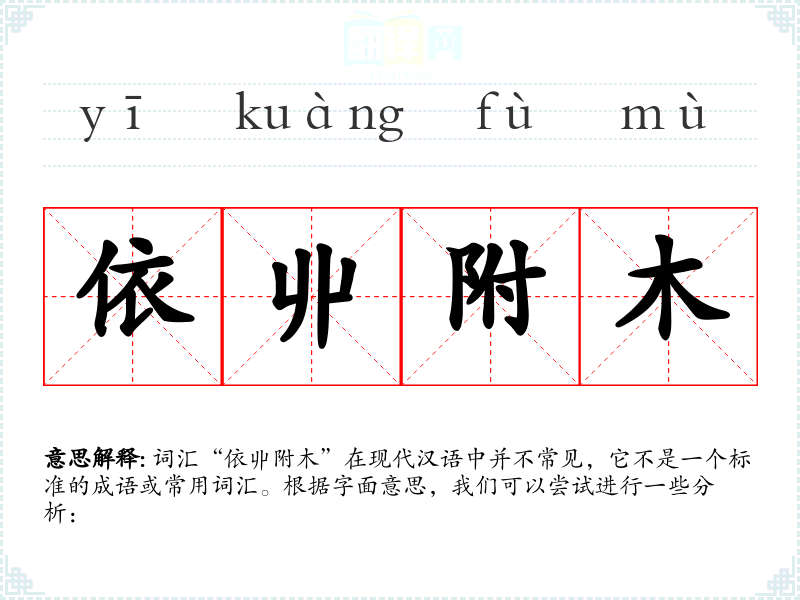 词汇“依丱附木”在现代汉语中并不常见,它不是一个标准的成语或常用词汇。根据字面意思,我们可以尝试进行一些分析: