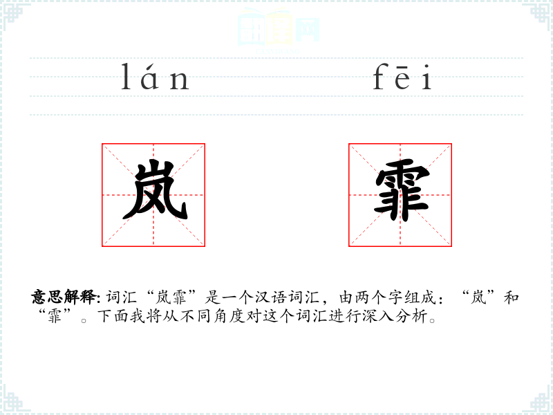 - 词源:“岚”和“霏”都是古代汉语词汇,历史悠久。