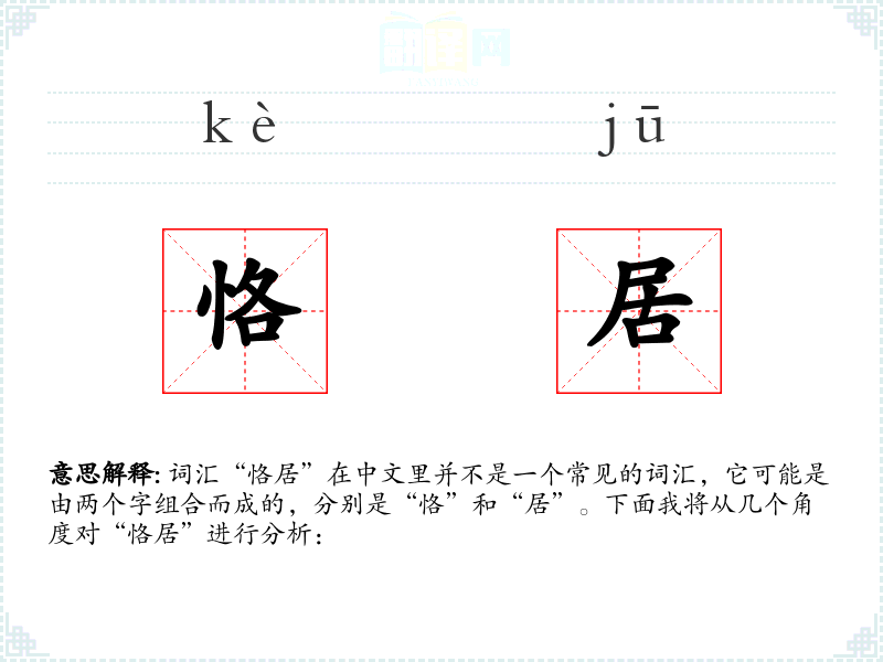 由于“恪居”不是一个常用词汇,其词源和演变可能不太明确。通常,“恪”字来源于古代汉语,表示恭敬、谨慎,而“居”字则表示居住、停留。