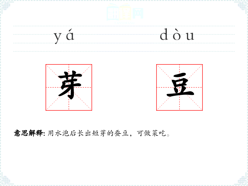 用水泡后长出短芽的蚕豆,可做菜吃。
