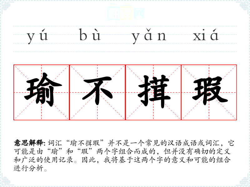 词汇“瑜不搑瑕”并不是一个常见的汉语成语或词汇,它可能是由“瑜”和“瑕”两个字组合而成的,但并没有确切的定义和广泛的使用记录。因此,我将基于这两个字的意义和可能的组合进行分析。