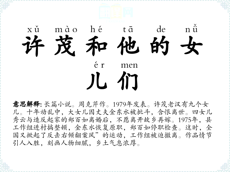 "许茂和他的女儿们"的意思解释、许茂和他的女儿们是什么意思由翻译网汉语词典查词提供。
