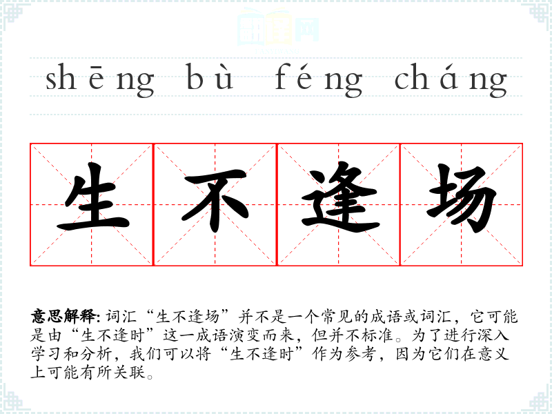 "生不逢场"的意思解释、生不逢场是什么意思由翻译网汉语词典查词提供。