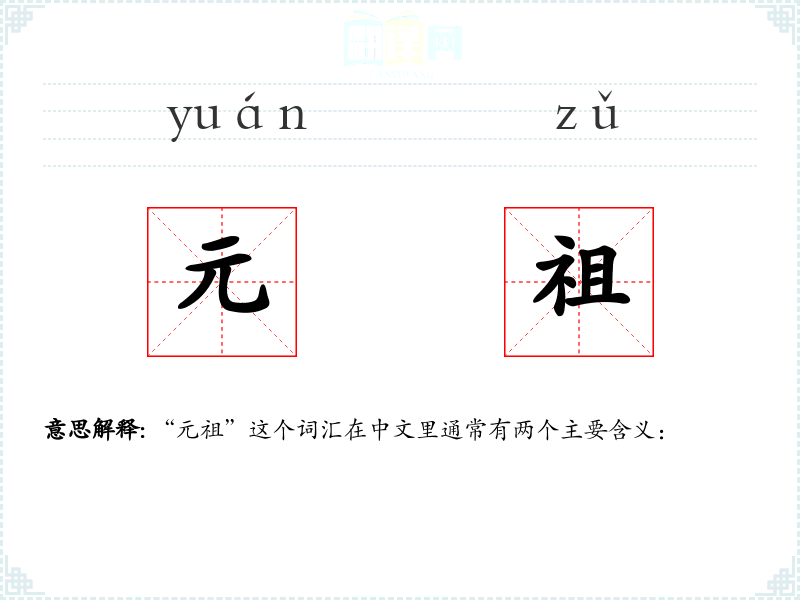 - 字面意思:指事物的起源或最早的祖先。