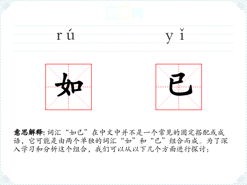 词汇“如已”在中文中并不是一个常见的固定搭配或成语,它可能是由两个单独的词汇“如”和“已”组合而成。为了深入学习和分析这个组合,我们可以从以下几个方面进行探讨:
