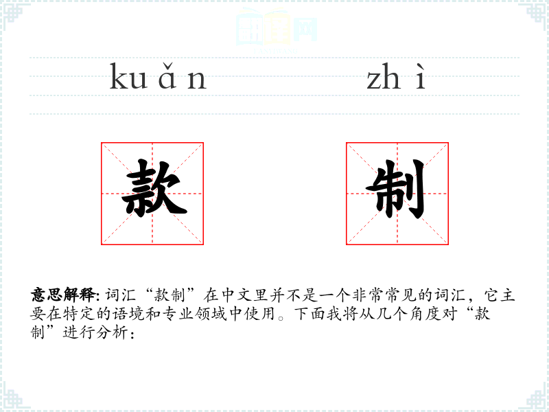 词汇“款制”在中文里并不是一个非常常见的词汇,它主要在特定的语境和专业领域中使用。下面我将从几个角度对“款制”进行分析: