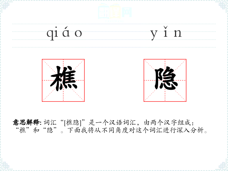 词汇“[樵隐]”是一个汉语词汇,由两个汉字组成:“樵”和“隐”。下面我将从不同角度对这个词汇进行深入分析。
