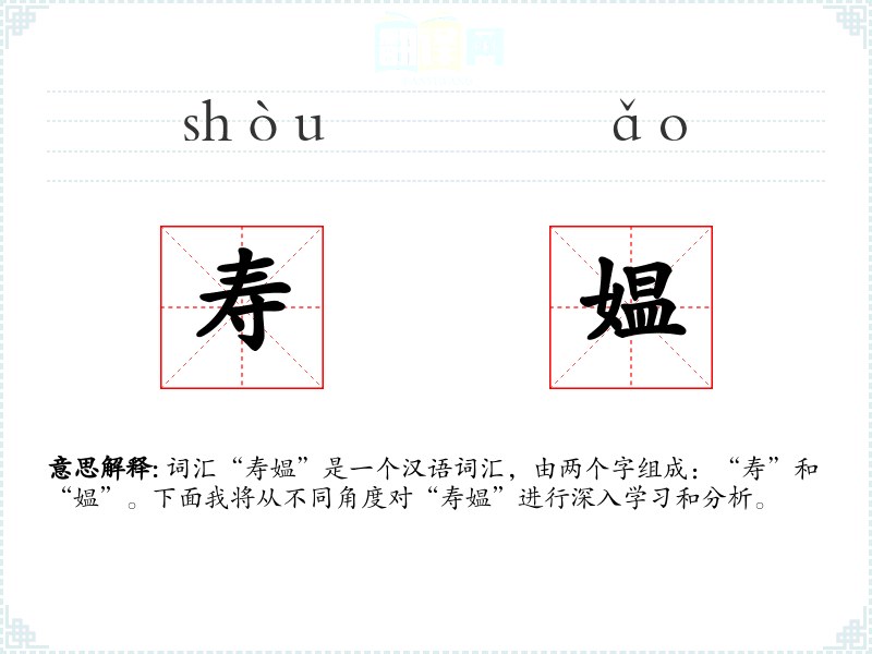 - 词源:“寿”和“媪”都是古代汉语词汇,历史悠久。