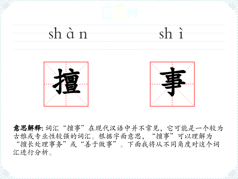 词汇“擅事”在现代汉语中并不常见,它可能是一个较为古雅或专业性较强的词汇。根据字面意思,“擅事”可以理解为“擅长处理事务”或“善于做事”。下面我将从不同角度对这个词汇进行分析。