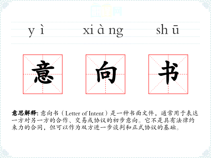 - 同义词:意向声明(Intent Statement)、初步协议(Preliminary Agreement)