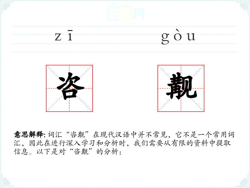 词汇“咨觏”在现代汉语中并不常见,它不是一个常用词汇,因此在进行深入学*和分析时,我们需要从有限的资料中提取信息。以下是对“咨觏”的分析: