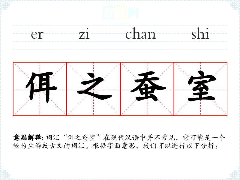词汇“佴之蚕室”在现代汉语中并不常见,它可能是一个较为生僻或古文的词汇。根据字面意思,我们可以进行以下分析: