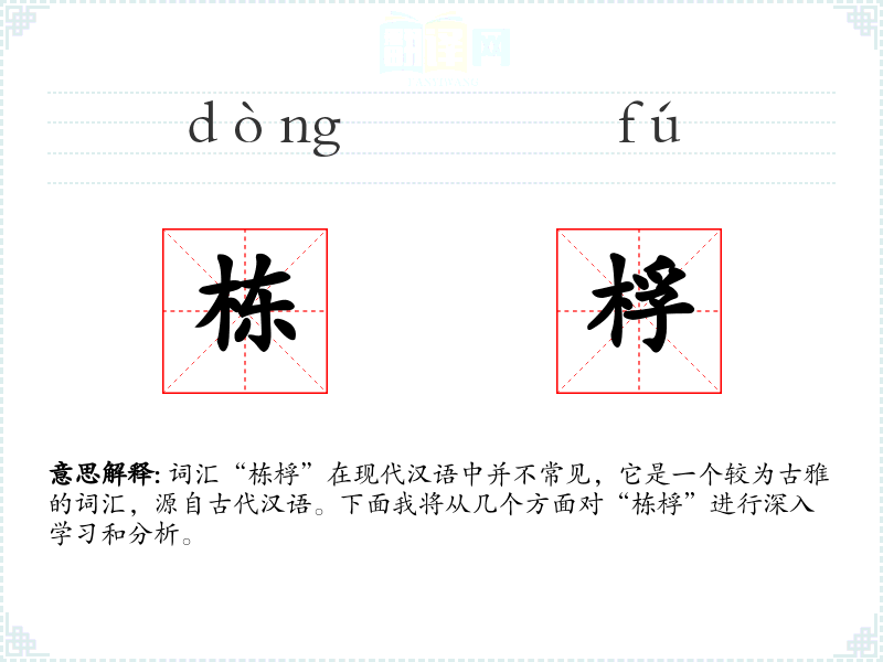 词汇“栋桴”在现代汉语中并不常见,它是一个较为古雅的词汇,源自古代汉语。下面我将从几个方面对“栋桴”进行深入学*和分析。