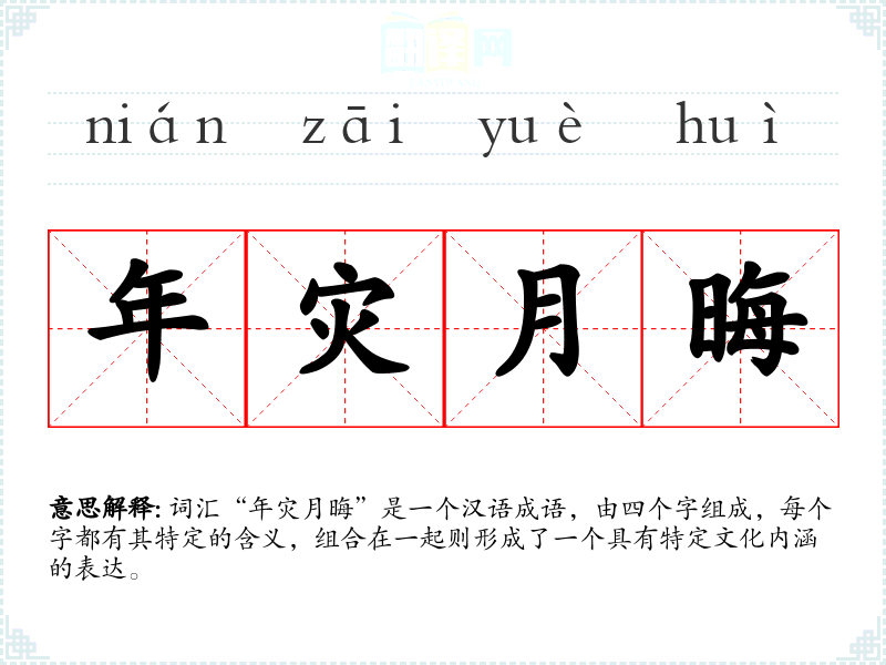 词汇“年灾月晦”是一个汉语成语,由四个字组成,每个字都有其特定的含义,组合在一起则形成了一个具有特定文化内涵的表达。