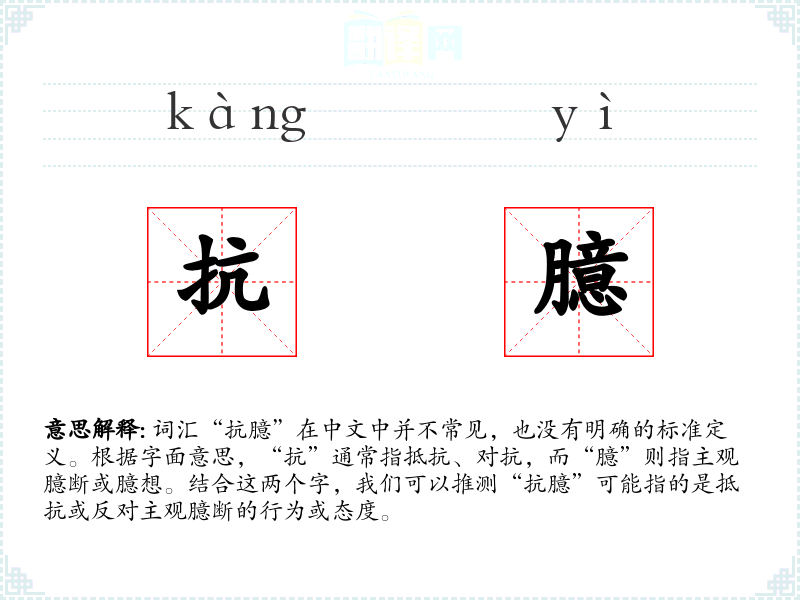 - 口语:在日常对话中,可能不太常用,但如果有人提到“我们要抗臆”,意思可能是提醒大家不要凭空猜测,要基于事实。