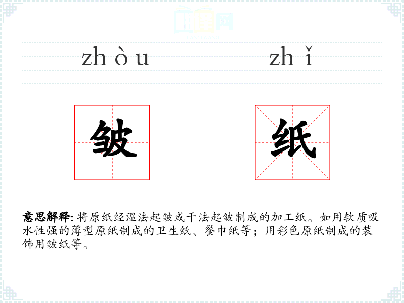 皱纸的分字解释