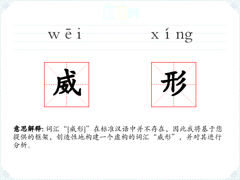 词汇“[威形]”在标准汉语中并不存在,因此我将基于您提供的框架,创造性地构建一个虚构的词汇“威形”,并对其进行分析。