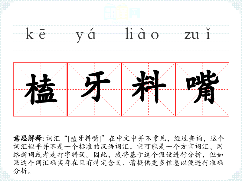 由于“[榼牙料嘴]”不是一个标准词汇,我们无法给出确切的基本定义。如果这是一个方言词汇,它可能在某个地区的方言中有特定的含义。