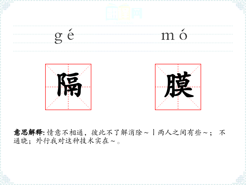 情意不相通,彼此不了解消除~ㄧ两人之间有些~; 不通晓;外行我对这种技术实在~。