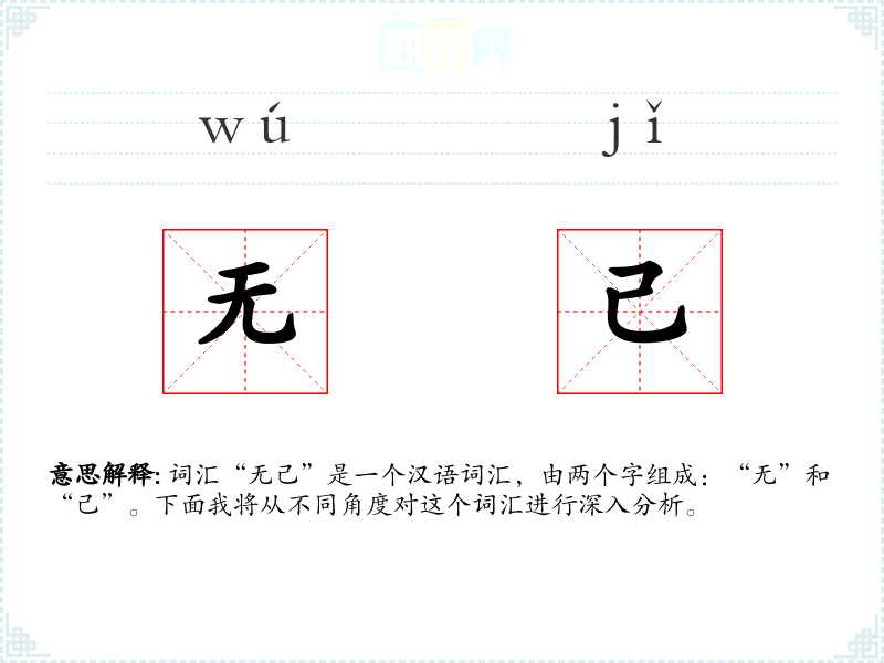 词汇“无己”是一个汉语词汇,由两个字组成:“无”和“己”。下面我将从不同角度对这个词汇进行深入分析。