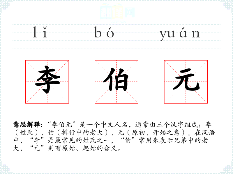 “李”作为姓氏,源远流长,最早可以追溯到古代的部落名称。“伯”和“元”在古代汉语中都有明确的意义,随着时间的推移,这些字的意义和用法逐渐固定下来。
