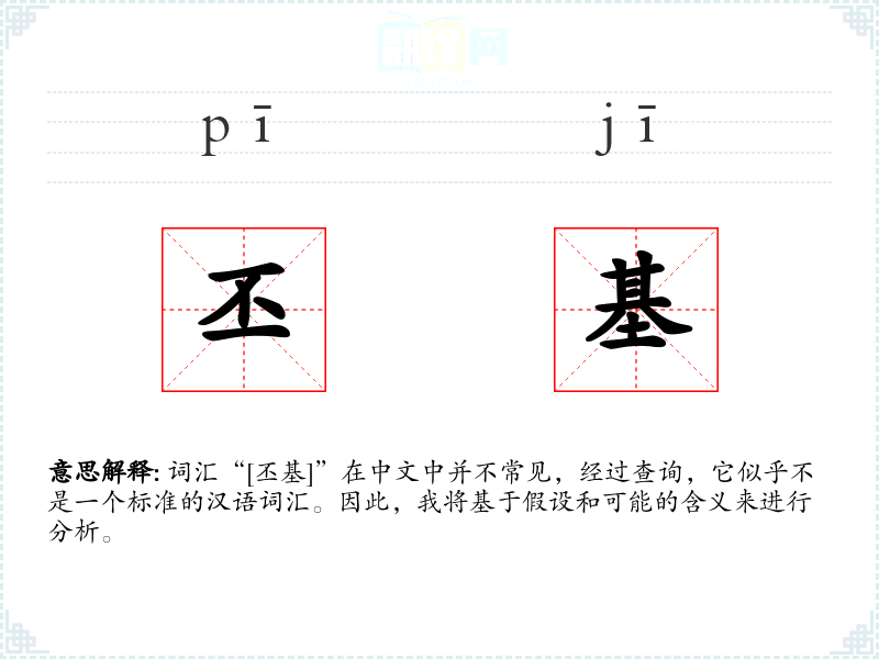 词汇“[丕基]”在中文中并不常见,经过查询,它似乎不是一个标准的汉语词汇。因此,我将基于假设和可能的含义来进行分析。
