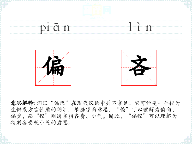 由于“偏悭”不是一个常用词汇,它在文学、口语或专业领域中的使用可能较为有限。在某些方言或特定社群中,这个词可能被用来形容那些在金钱或物质上特别小气的人。