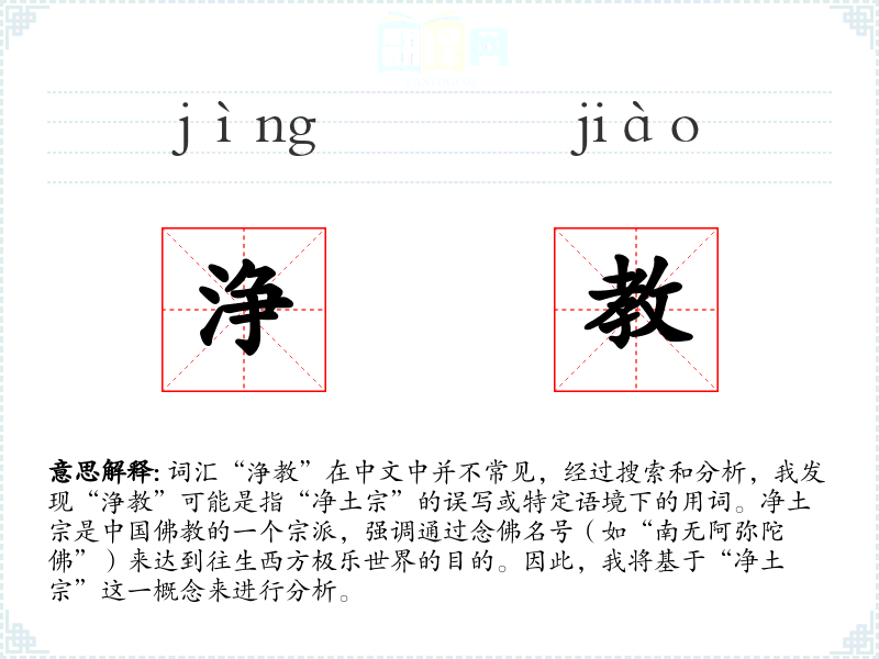 词汇“浄教”在中文中并不常见,经过搜索和分析,我发现“浄教”可能是指“净土宗”的误写或特定语境下的用词。净土宗是****的一个宗派,强调通过念佛名号(如“南无阿弥陀佛”)来达到往生西方极乐世界的目的。因此,我将基于“净土宗”这一概念来进行分析。