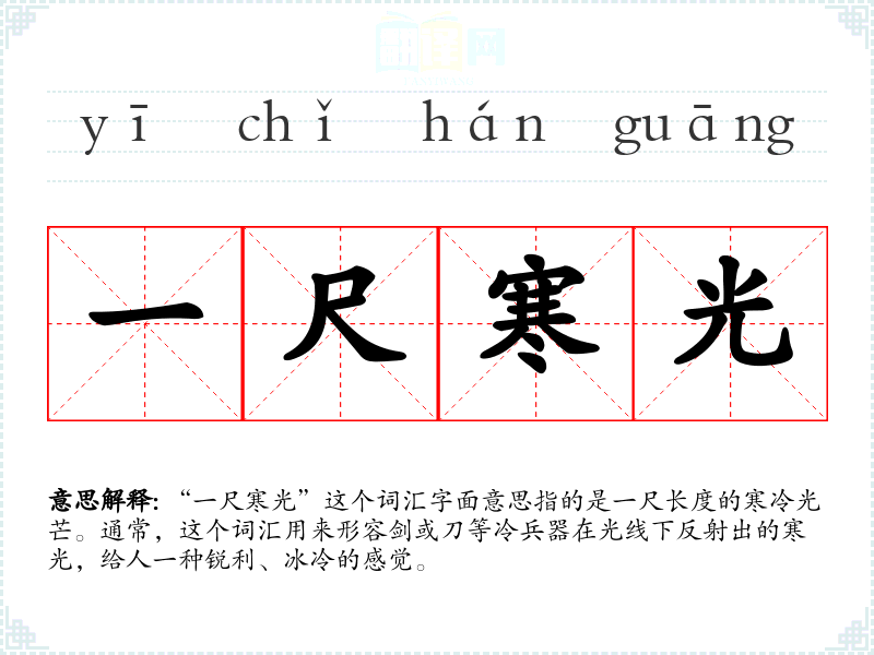 - 反义词:暖光、温芒(这些反义词不太常见,因为“一尺寒光”特指冷兵器的冷光)