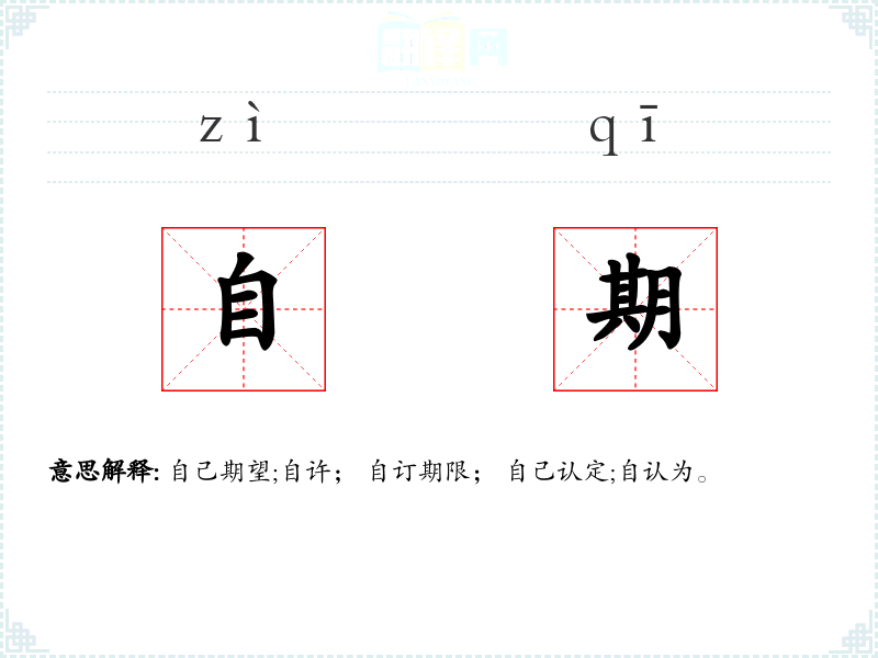 自己期望;自许; 自订期限; 自己认定;自认为。