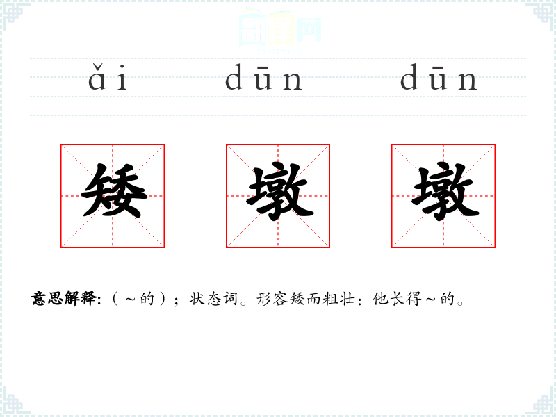 (~的);状态词。形容矮而粗壮:他长得~的。