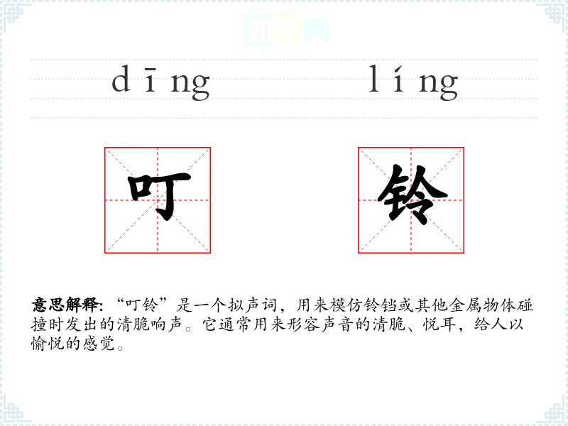 - 同义词:叮当、叮咚、叮叮、铃铃