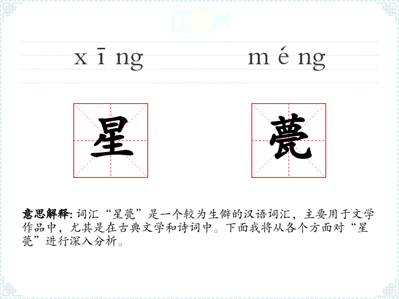 词汇“星甍”是一个较为生僻的汉语词汇,主要用于文学作品中,尤其是在古典文学和诗词中。下面我将从各个方面对“星甍”进行深入分析。