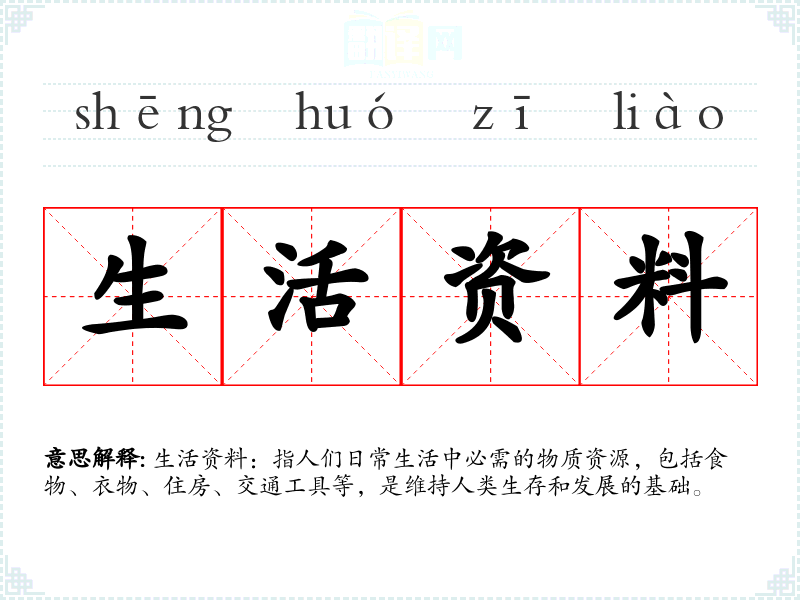 - 口语:在日常对话中,生活资料是一个常用词汇,如“我们需要更多的生活资料来改善生活质量。”