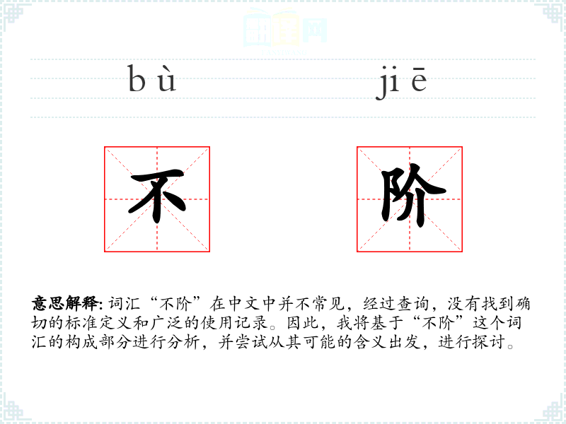 由于“不阶”不是一个常用词汇,它在不同语言或文化中的对应词汇及其使用情况不详。