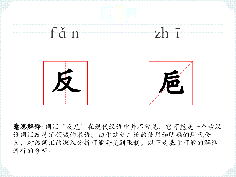 词汇“反巵”在现代汉语中并不常见,它可能是一个古汉语词汇或特定领域的术语。由于缺乏广泛的使用和明确的现代含义,对该词汇的深入分析可能会受到限制。以下是基于可能的解释进行的分析: