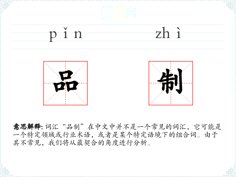 词汇“品制”在中文中并不是一个常见的词汇,它可能是一个特定领域或行业术语,或者是某个特定语境下的组合词。由于其不常见,我们将从最契合的角度进行分析。