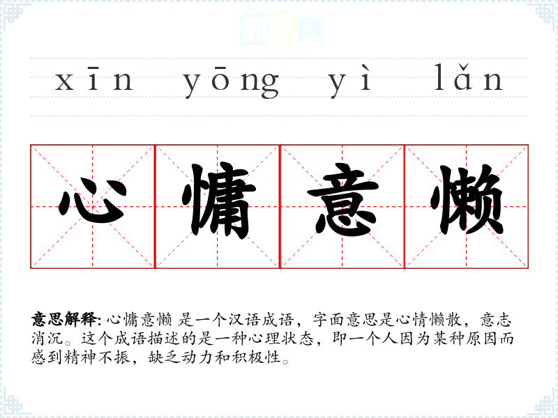 在英语中,心慵意懒 可以对应到 "listless" 或 "apathetic" 这样的词汇,它们都描述了一种缺乏活力和兴趣的状态。