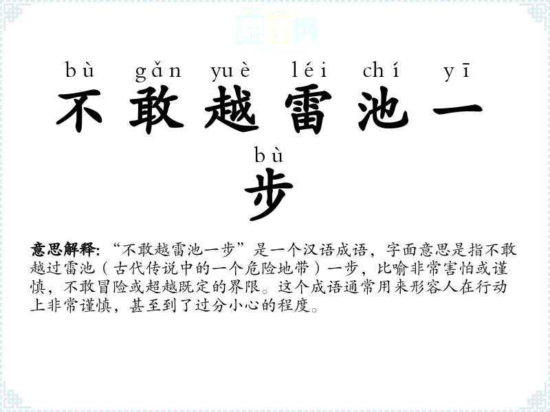 - bù gǎn yuè léi chí yī bù不敢越雷池一步