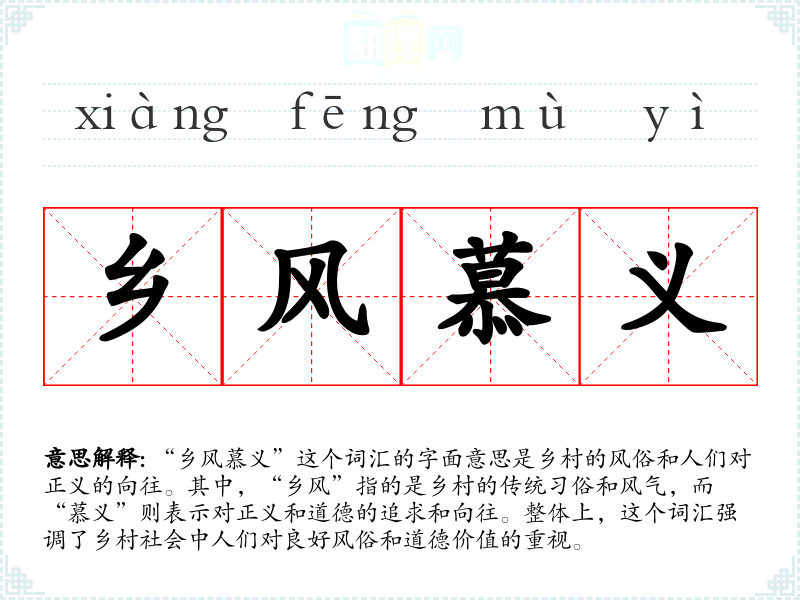 在其他文化中,类似的词汇可能包括“乡村美德”或“乡村传统”,但“乡风慕义”这个词汇特有的**文化色彩使其在跨文化比较中显得独特。