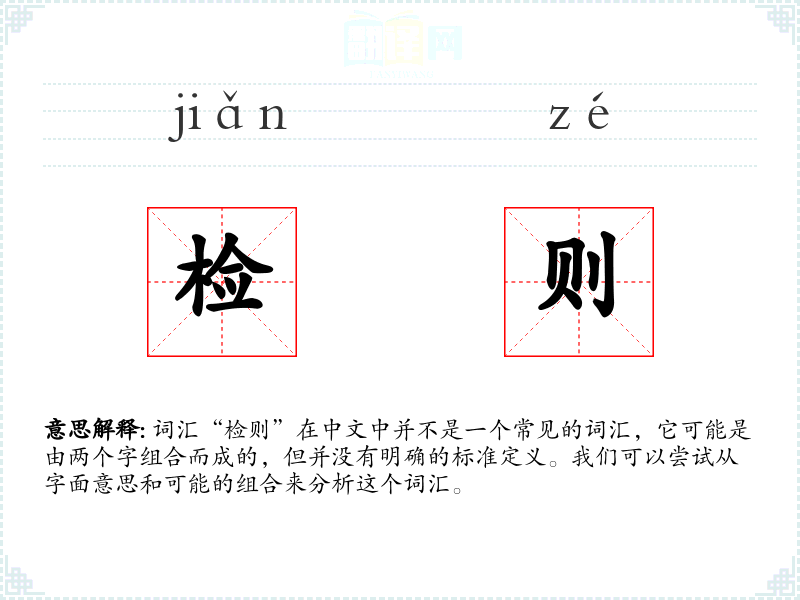 词汇“检则”在中文中并不是一个常见的词汇,它可能是由两个字组合而成的,但并没有明确的标准定义。我们可以尝试从字面意思和可能的组合来分析这个词汇。