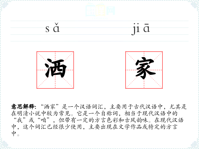 “洒家”的词源较为模糊,可能与古代方言有关。在古代汉语中,“洒”有时用作“咱”的变体,而“家”则是一种自称的后缀。随着时间的推移,这个词汇的使用范围逐渐缩小,现在主要保留在文学作品和某些方言中。