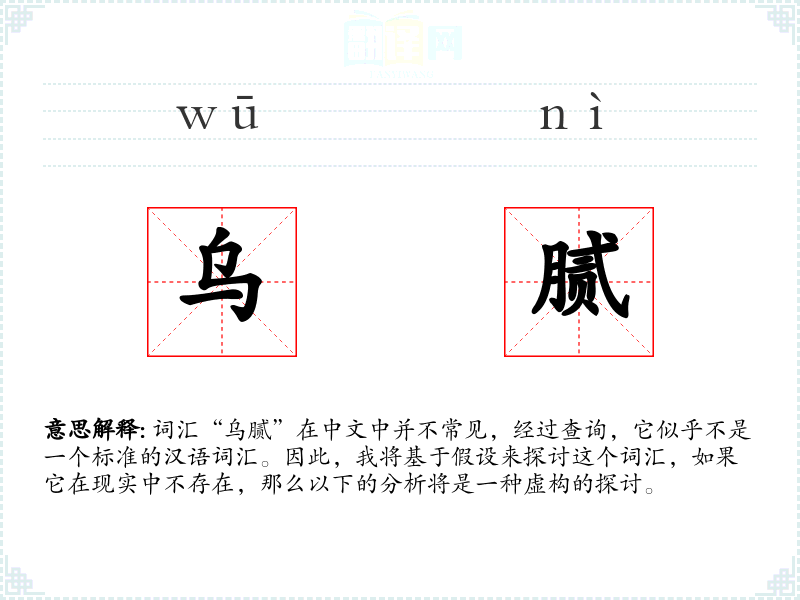 词汇“乌腻”在中文中并不常见,经过查询,它似乎不是一个标准的汉语词汇。因此,我将基于假设来探讨这个词汇,如果它在现实中不存在,那么以下的分析将是一种虚构的探讨。
