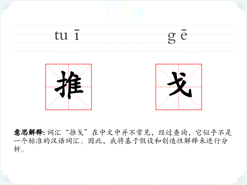 词汇“推戈”在中文中并不常见,经过查询,它似乎不是一个标准的汉语词汇。因此,我将基于假设和创造性解释来进行分析。