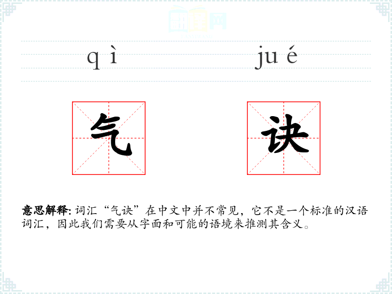 词汇“气诀”在中文中并不常见,它不是一个标准的汉语词汇,因此我们需要从字面和可能的语境来推测其含义。