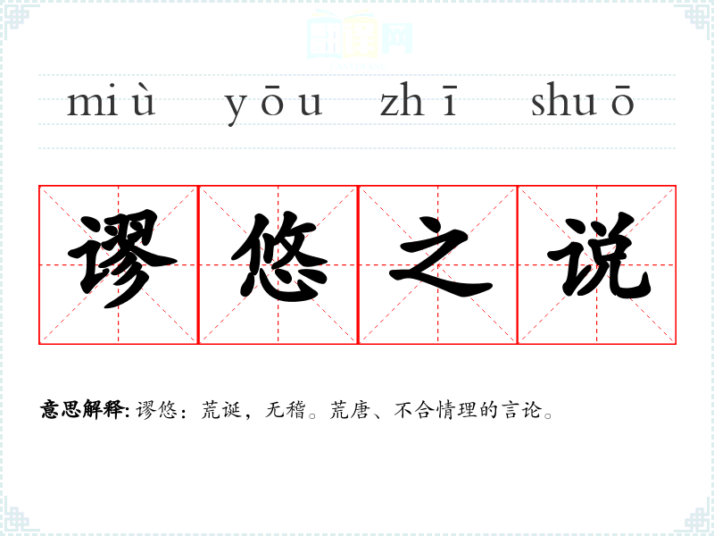 谬悠:荒诞,无稽。荒唐、不合情理的言论。