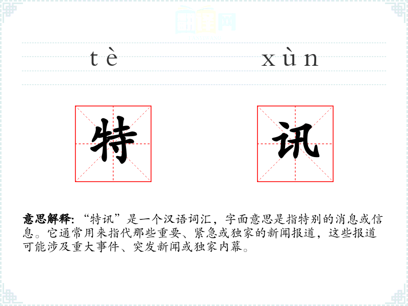 “特讯”一词由“特”和“讯”两个字组成。“特”意味着特别或特殊,“讯”则指消息或信息。这个词在现代汉语中主要用于新闻行业,但随着信息传播方式的变化,它的使用范围也在逐渐扩大。