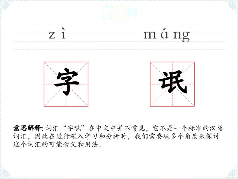 词汇“字氓”在中文中并不常见,它不是一个标准的汉语词汇,因此在进行深入学习和分析时,我们需要从多个角度来探讨这个词汇的可能含义和用法。