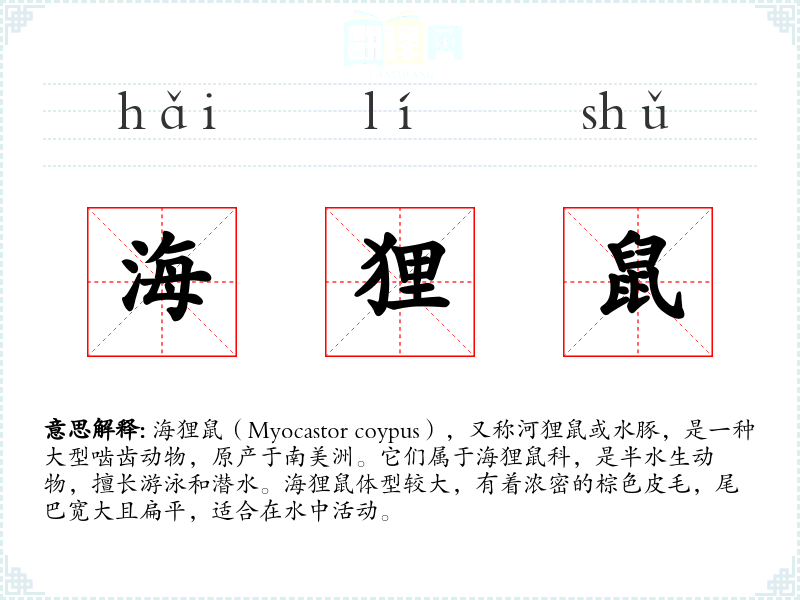 "海狸鼠"的意思解释、海狸鼠是什么意思由翻译网汉语词典查词提供。